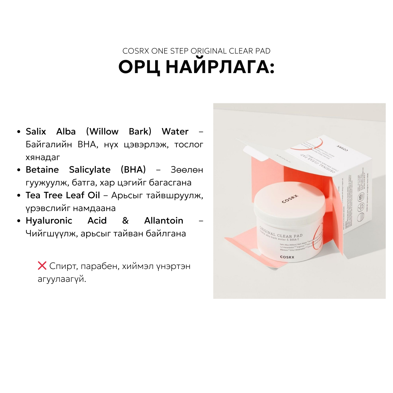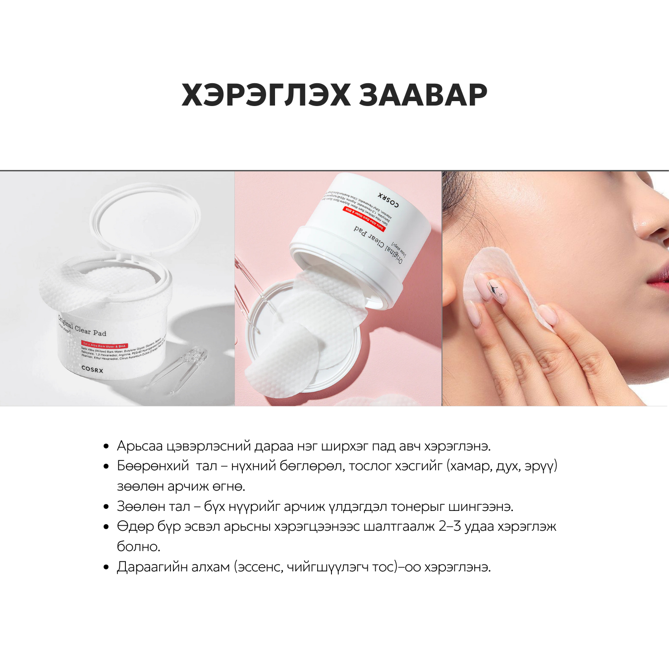 Арьсны үхжсэн эс, битүрсэн нүх сүвийг цэвэрлэж, илүүдэл өөхийг арилгана.