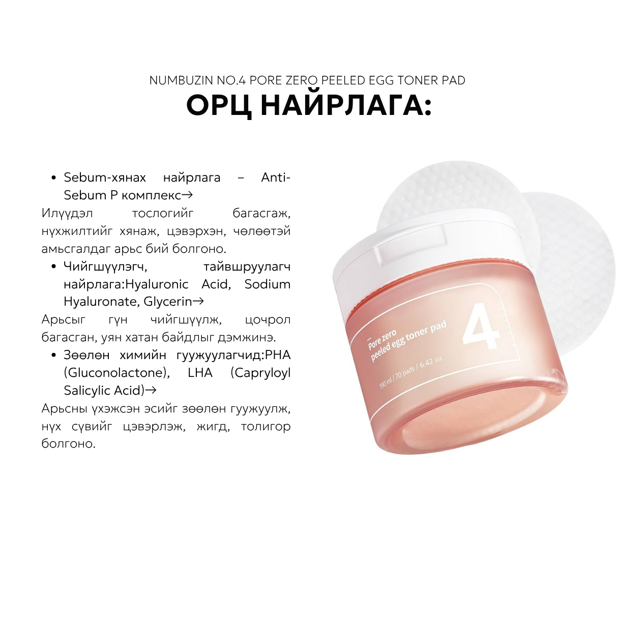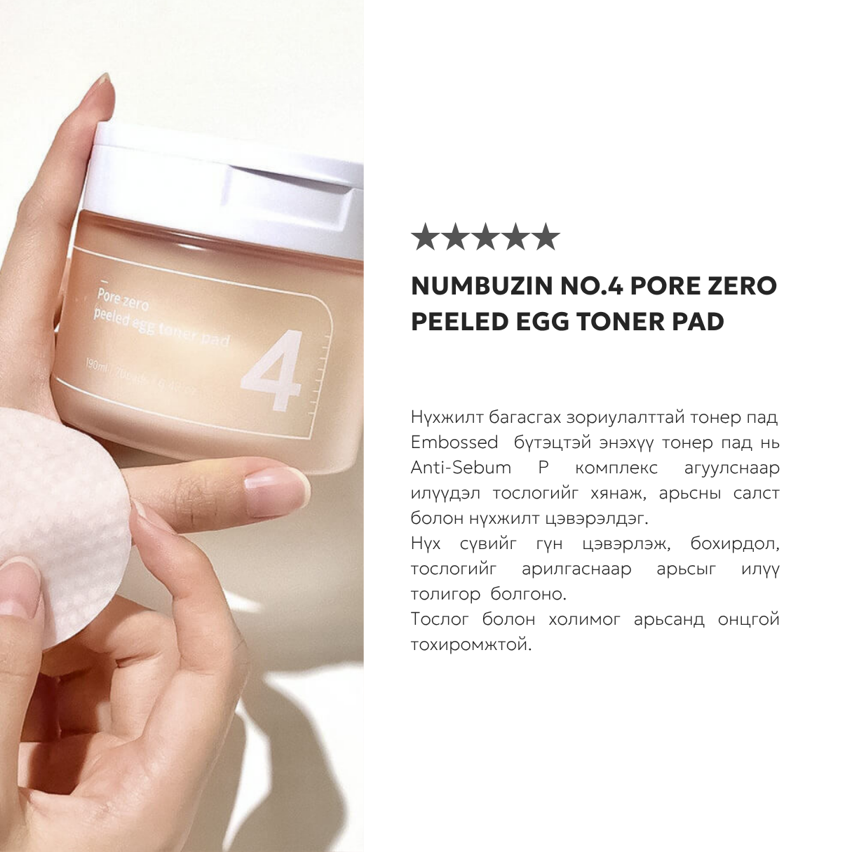 Numbuzin No.4 Pore Zero Peeled Egg Toner Pad - 70ea