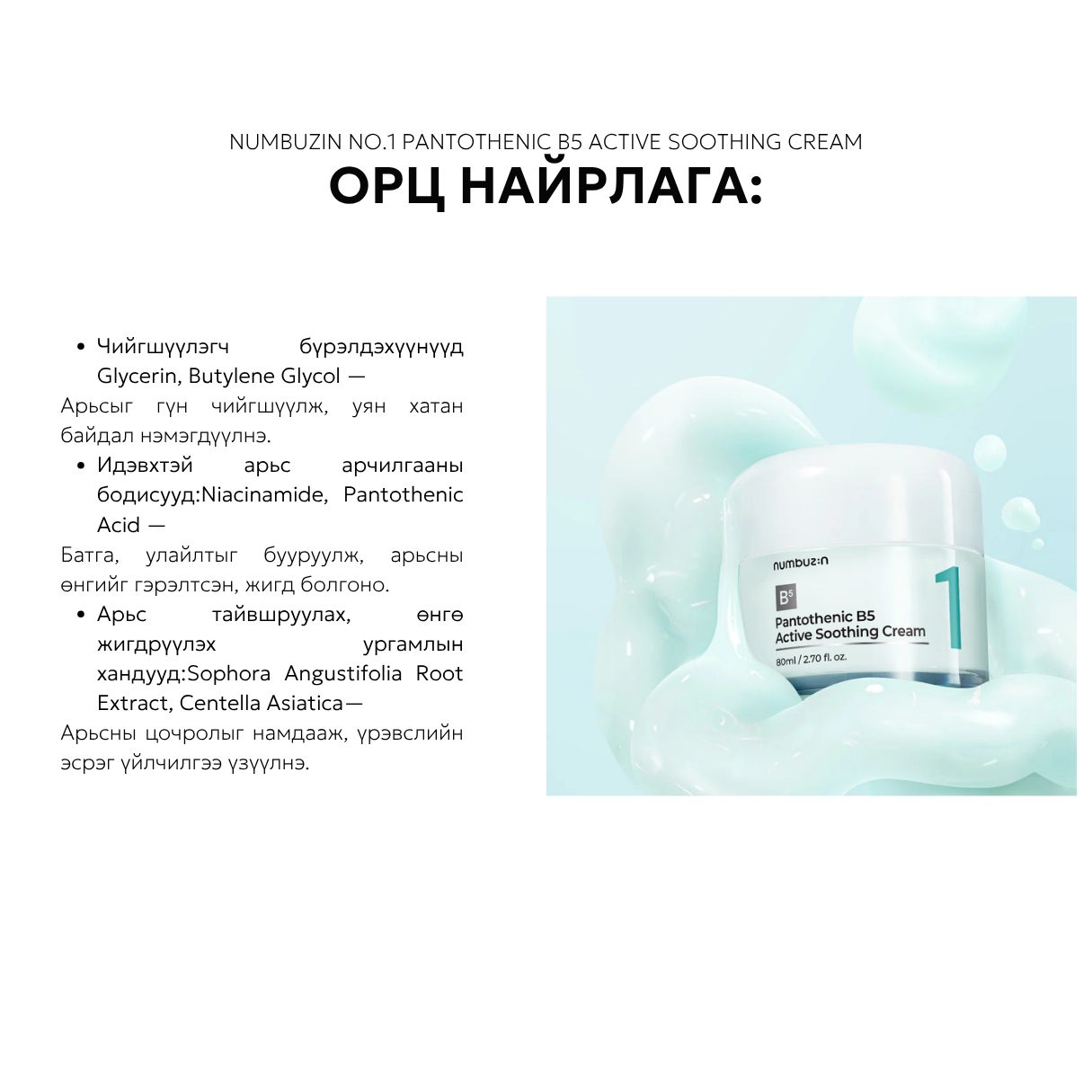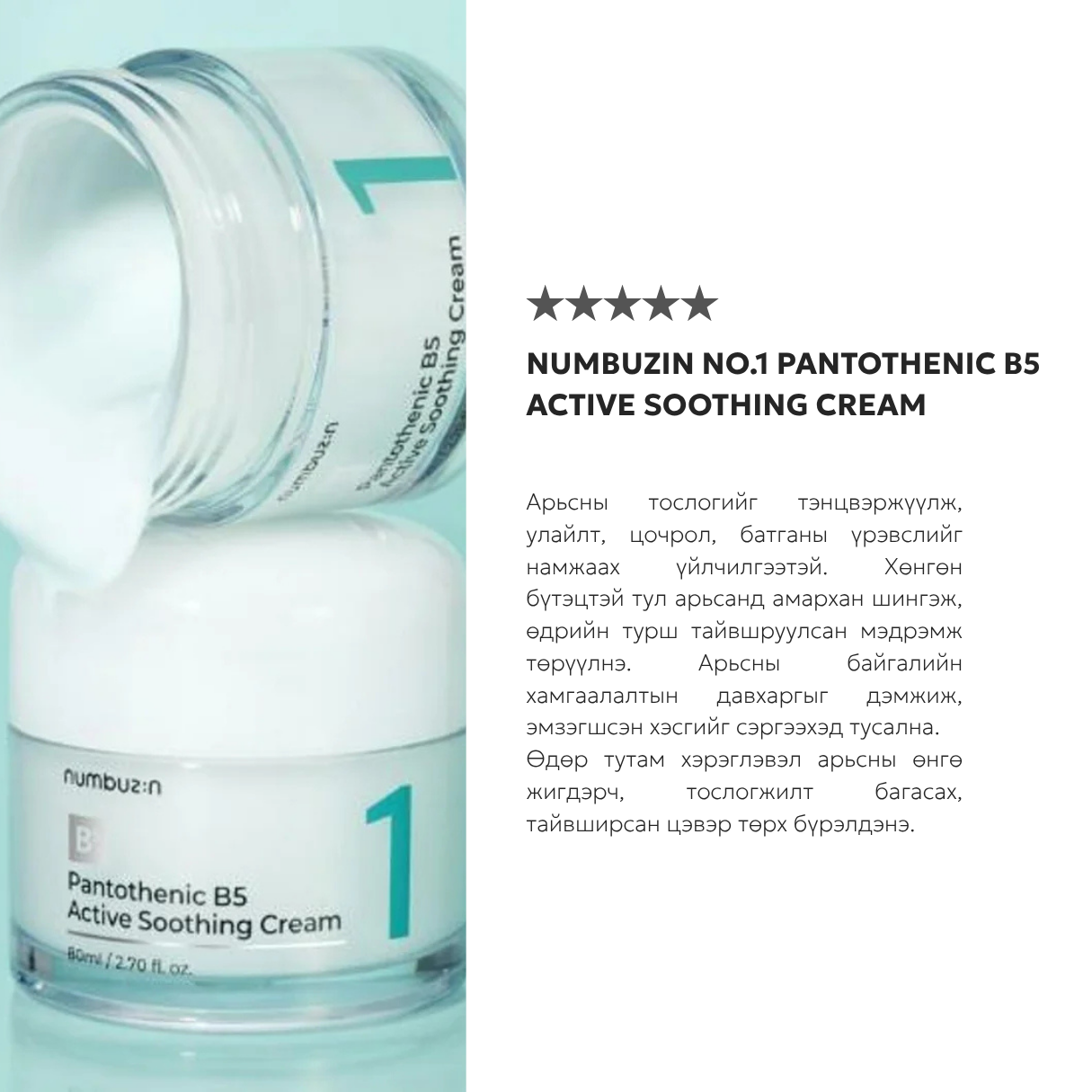 Numbuzin No.1 Pantothenic B5 Active Soothing Cream - 80ml